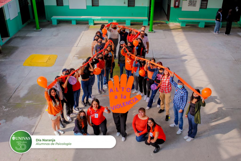 El pasado 25 de agosto, estudiantes de la carrera de psicología de la Universidad del Valle de Santiago, se unieron a la conmemoración del “Día Naranja”, una iniciativa que tiene como fin visibilizar la situación de violencia que viven en el mundo las mujeres y concientizar a la sociedad sobre la urgencia de fomentar la cultura de la “no violencia contra la mujer”.